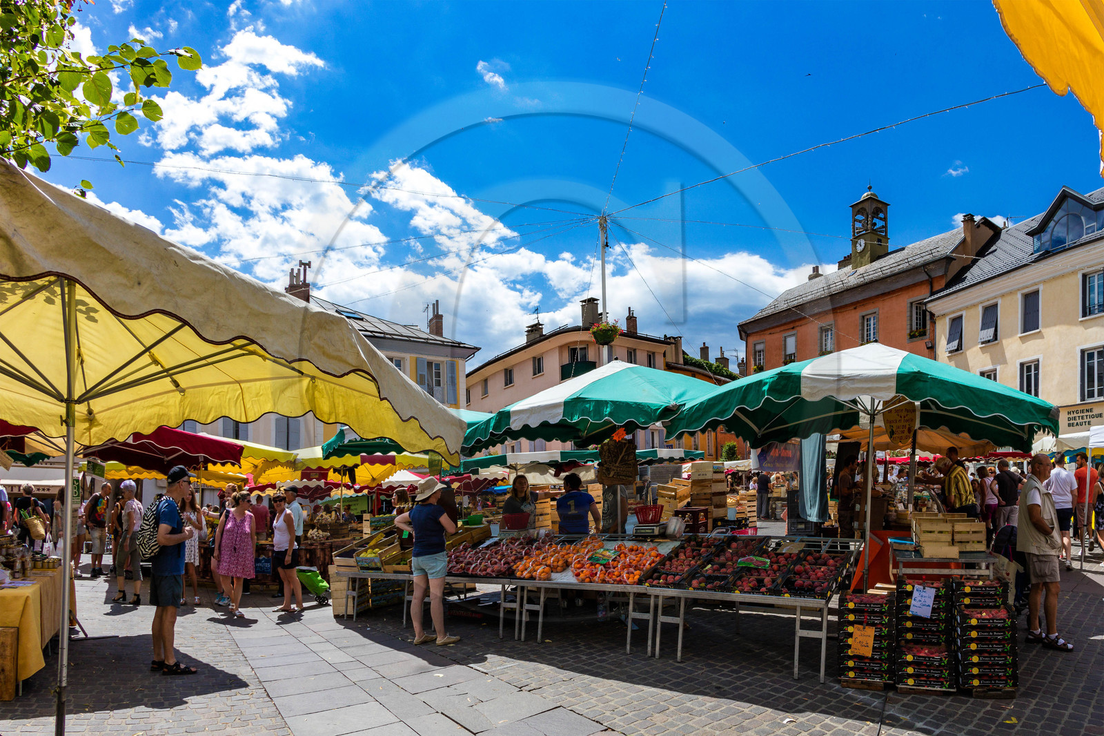 | Description | Hautes-Alpes (05), Pays de Serre-Ponçon, vallée de la Durance, Embrun, le marché place Barthelon |