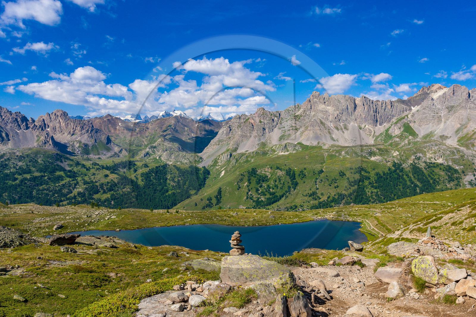 | Description | Hautes-Alpes (05), Briançonnais, Vallée de la Clarée, site naturel classé, Névache, randonnée pédestre au Lac Laramon |