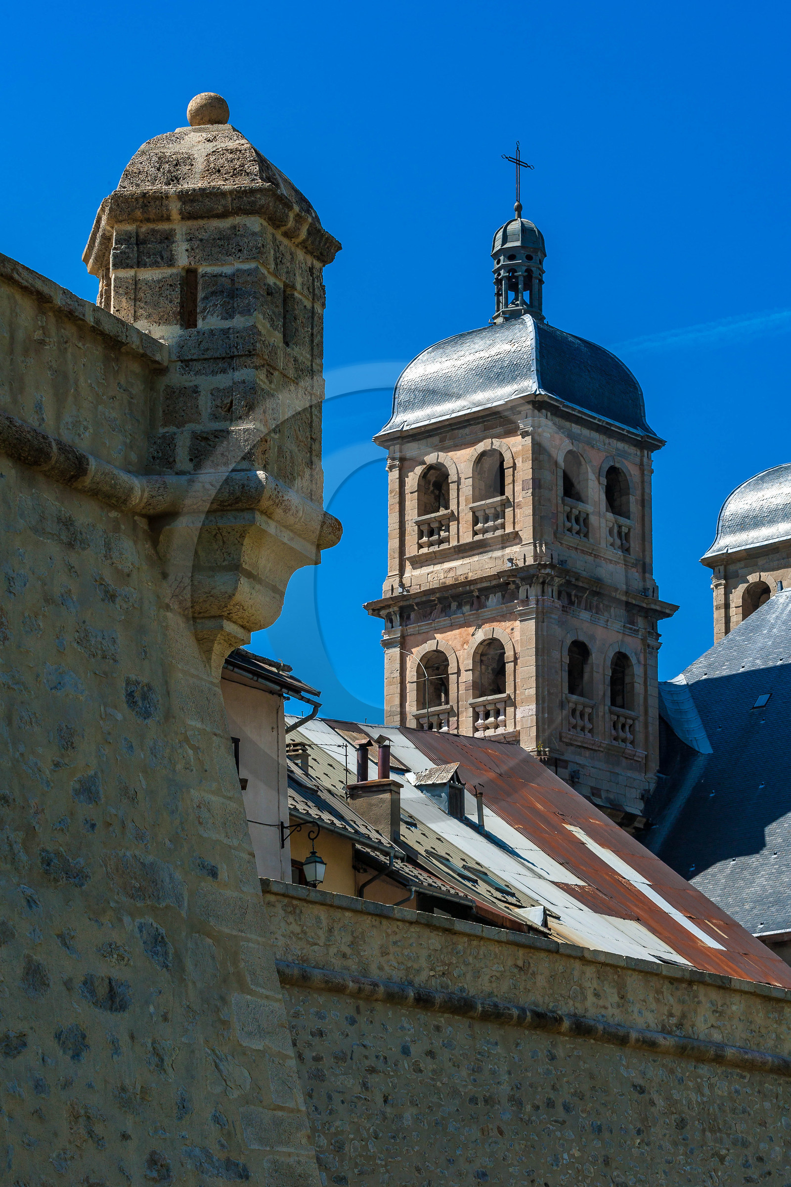 | Description | Hautes-Alpes (05), Serre Chevalier Vallée Briançon, 1350m d'altitude, ville d'Art et d'Histoire fortifiée par Vauban, les fortifications de Vauban sont inscrites sur la liste du patrimoine mondial de l'UNESCO, une échauguette et la collégiale |
