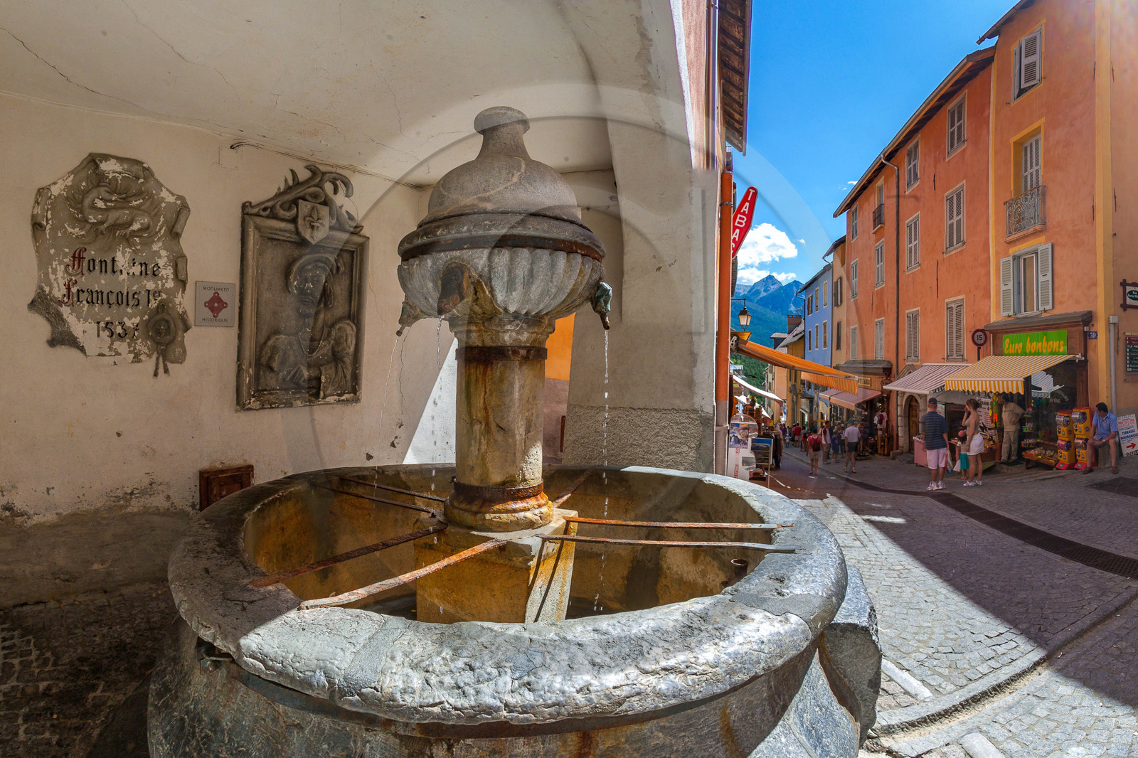 | Description | Hautes-Alpes (05), Serre Chevalier Vallée Briançon, 1350m d'altitude, ville d'Art et d'Histoire fortifiée par Vauban, les fortifications de Vauban sont inscrites sur la liste du patrimoine mondial de l'UNESCO, la Fontaine de François 1er et la Grande Gargouille |