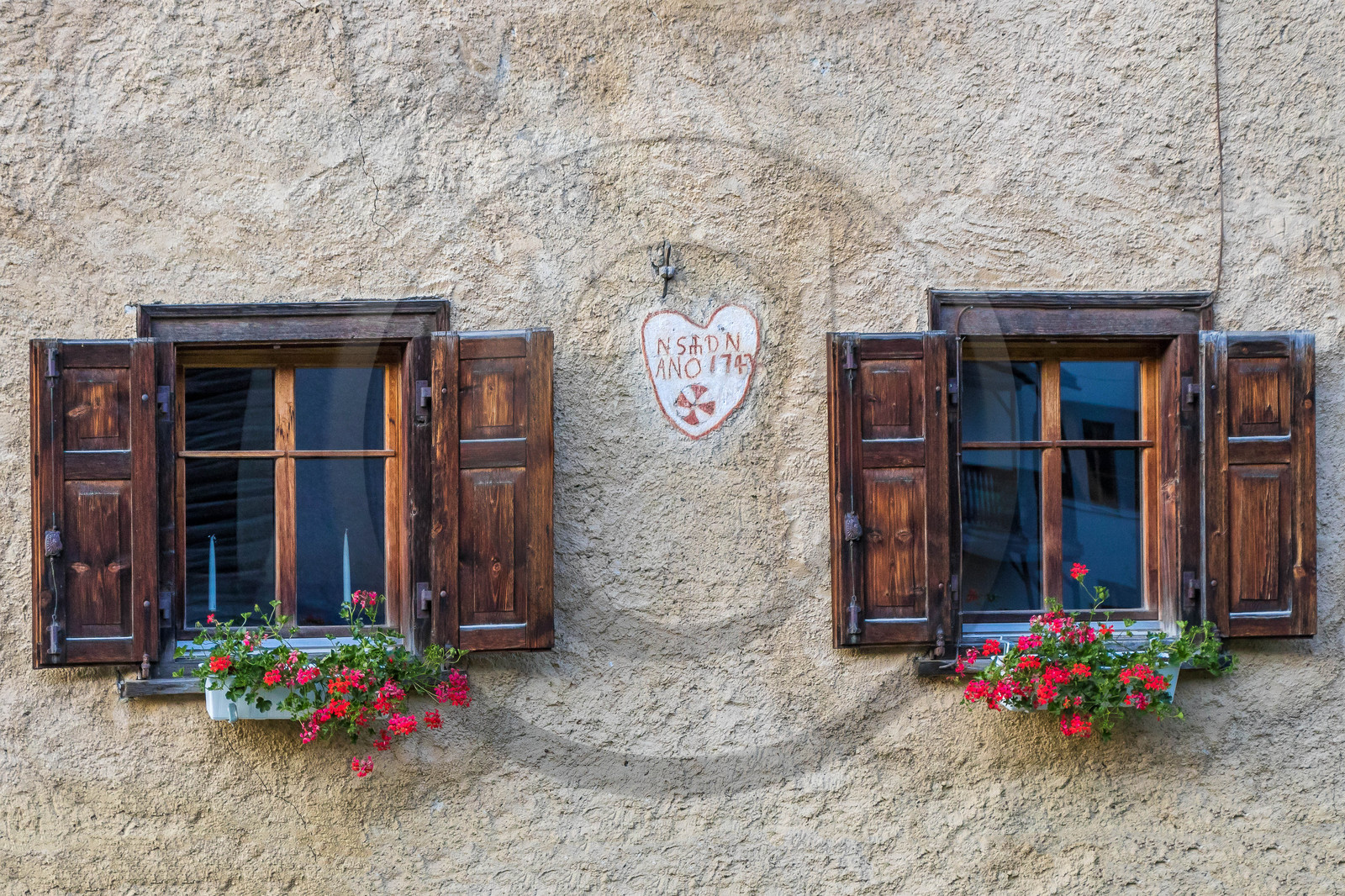 | Description | Suisse, canton des Grisons, Chemins de fer rhétiques, traversée des Alpes à bord du Bernina Express, itinéraire inscrit au patrimoine mondial de l'UNESCO, Bergün, maisons et fenêtres engadinoises caractérisées par des sgraffites (technique de grattage) |