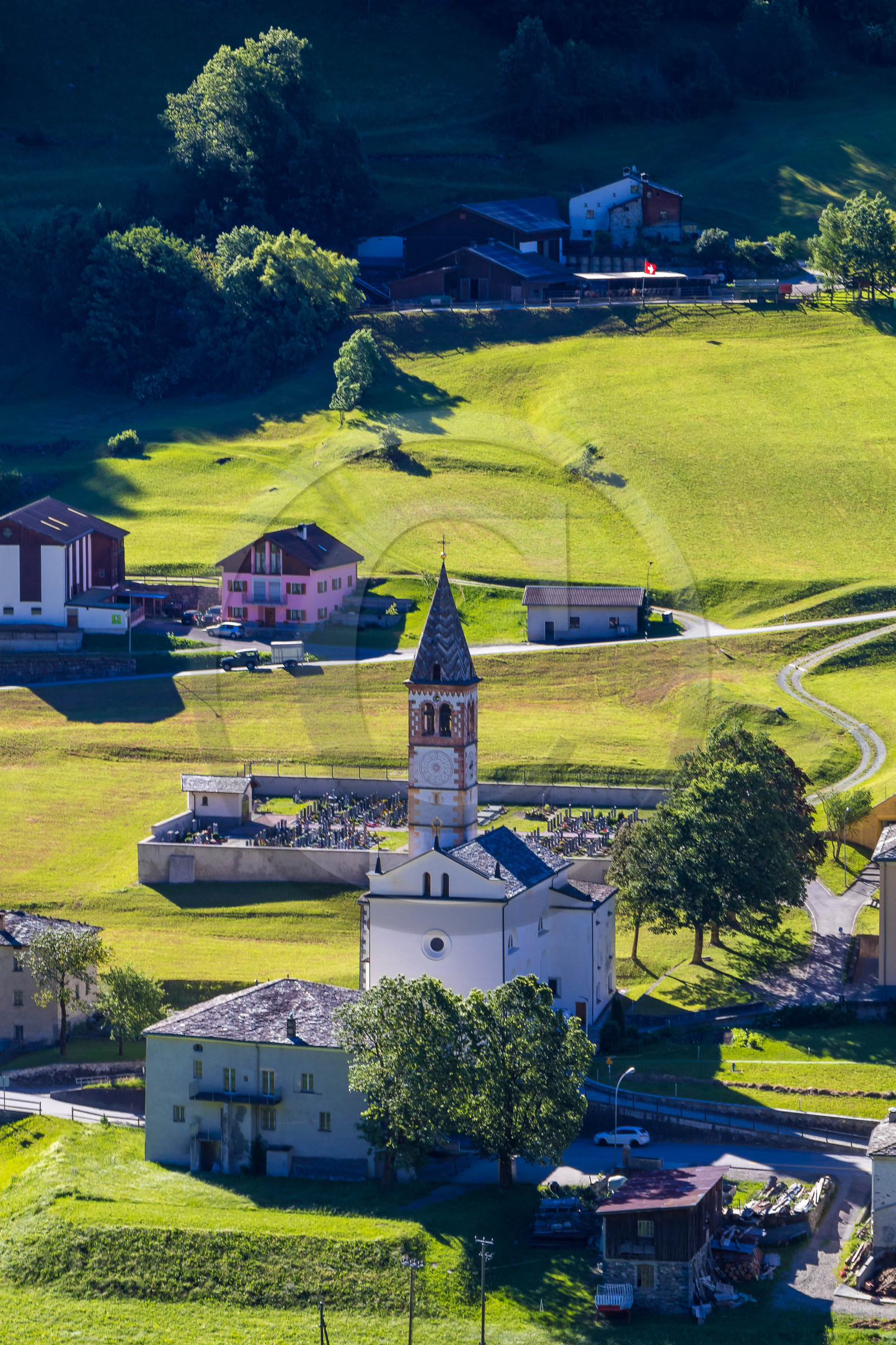 | Description | Switzerland, Canton of Graubünden, Rhaetian Railway, crossing the Alps on board the Bernina Express, UNESCO World Heritage Site, Val Poschiavo, San Carlo |