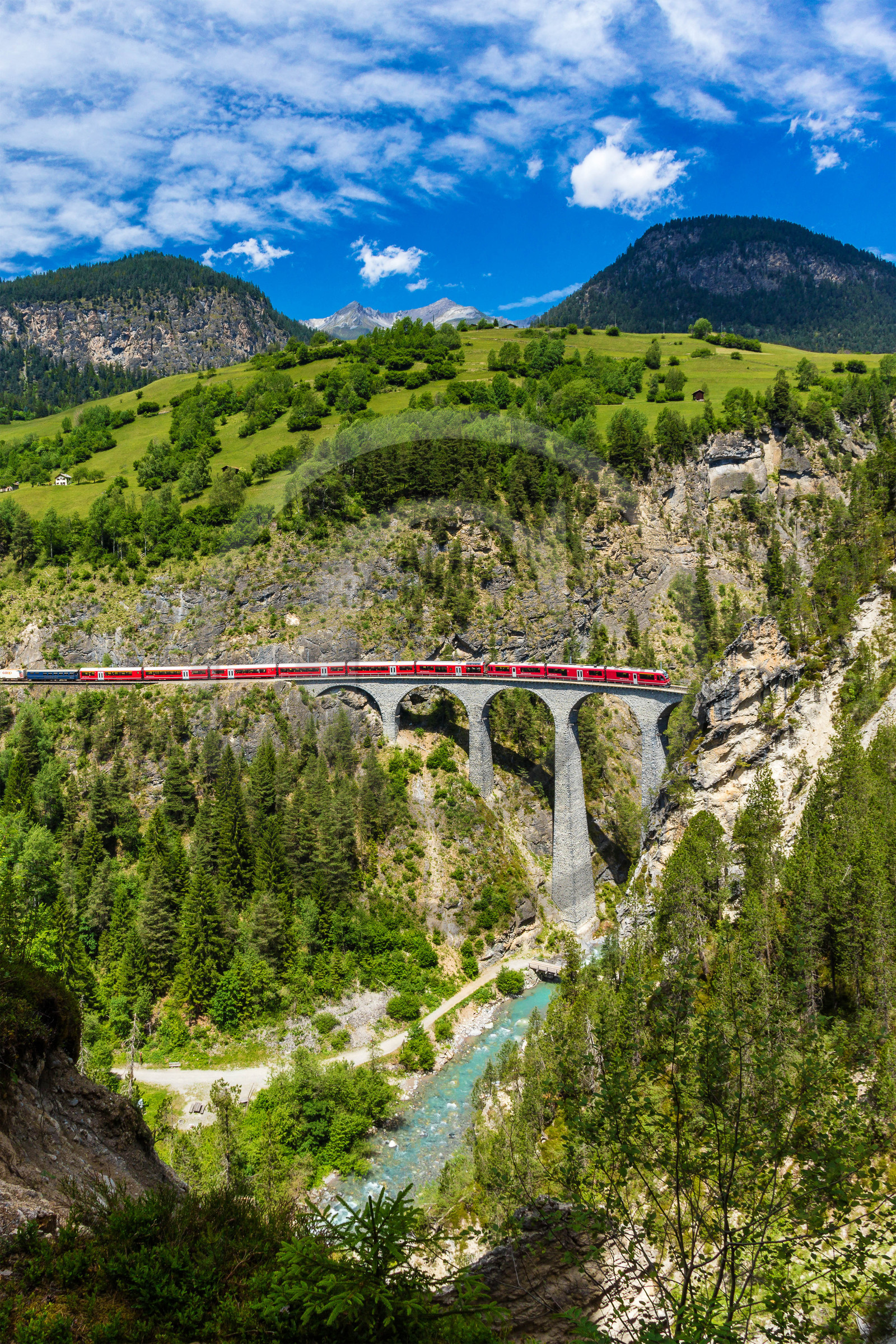 | Description | Switzerland, Canton of Graubünden, Rhaetian Railway, crossing the Alps on board the Bernina Express, UNESCO World Heritage Site, Filisur, Viaduc Landwasser |