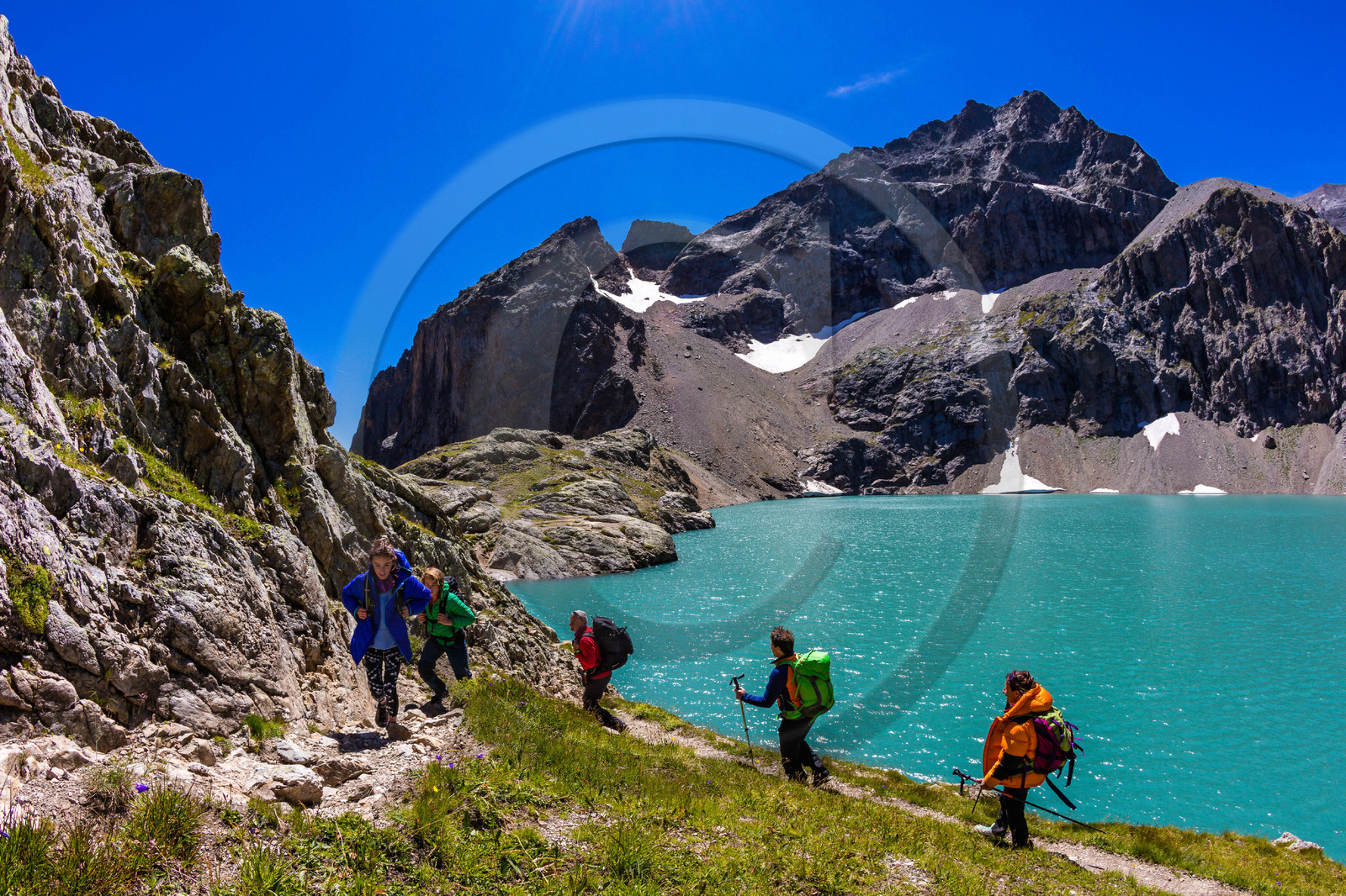 | Description | Hautes-Alpes (05), Pays des Ecrins, Parc national des Ecrins, Pelvoux-Vallouise, GR 54, Grand tour des Ecrins, Lac de L'Eychauda |