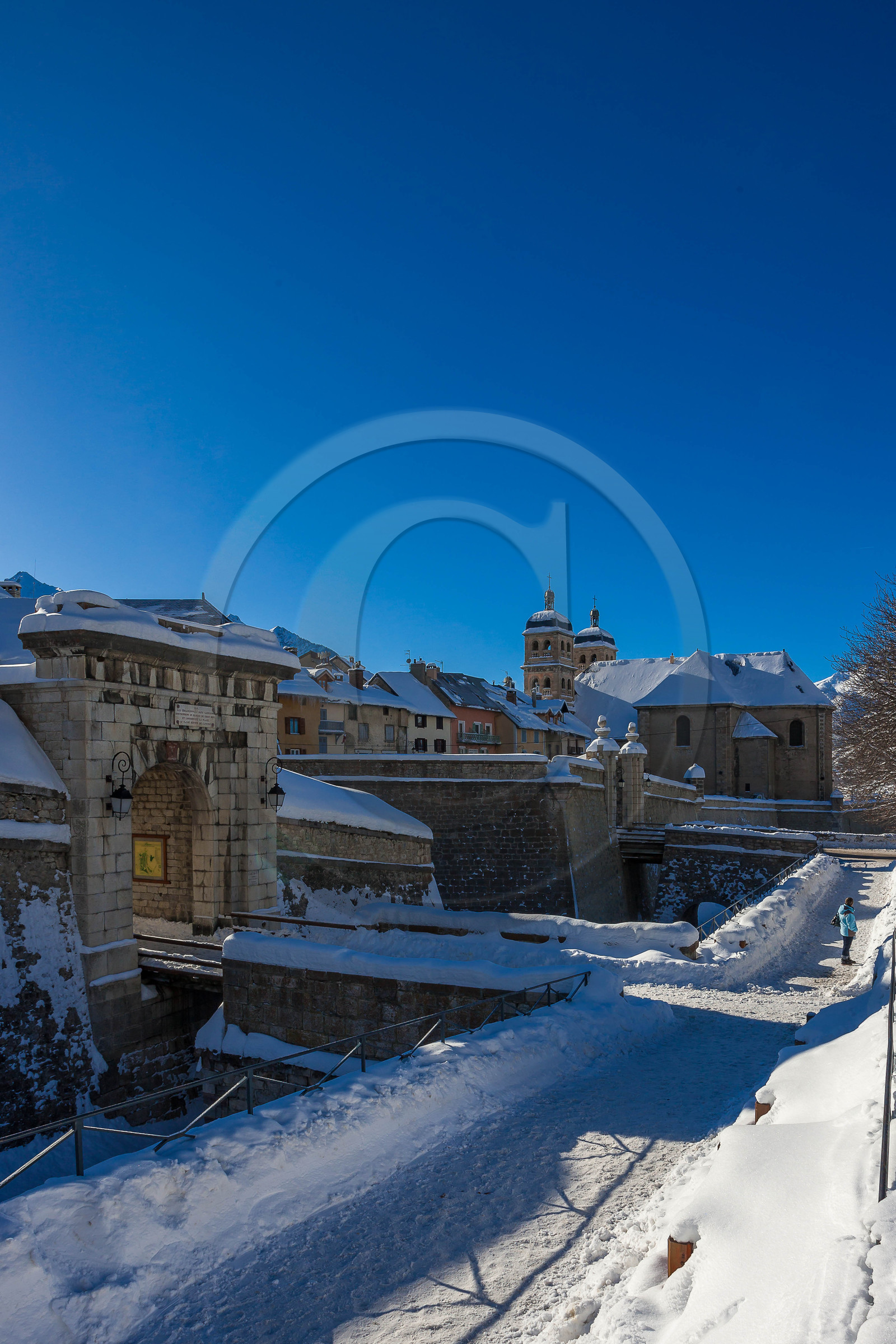| Description | Hautes-Alpes (05), Serre Chevalier Vallée Briançon, 1350m d'altitude, ville d'Art et d'Histoire fortifiée par Vauban, les fortifications de Vauban sont inscrites sur la liste du patrimoine mondial de l'UNESCO, porte de Pignerol |