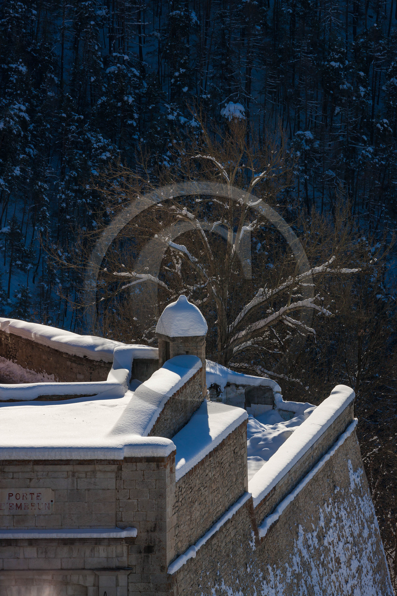 | Description | Hautes-Alpes (05), Serre Chevalier Vallée Briançon, 1350m d'altitude, ville d'Art et d'Histoire fortifiée par Vauban, les fortifications de Vauban sont inscrites sur la liste du patrimoine mondial de l'UNESCO, une échauguette |