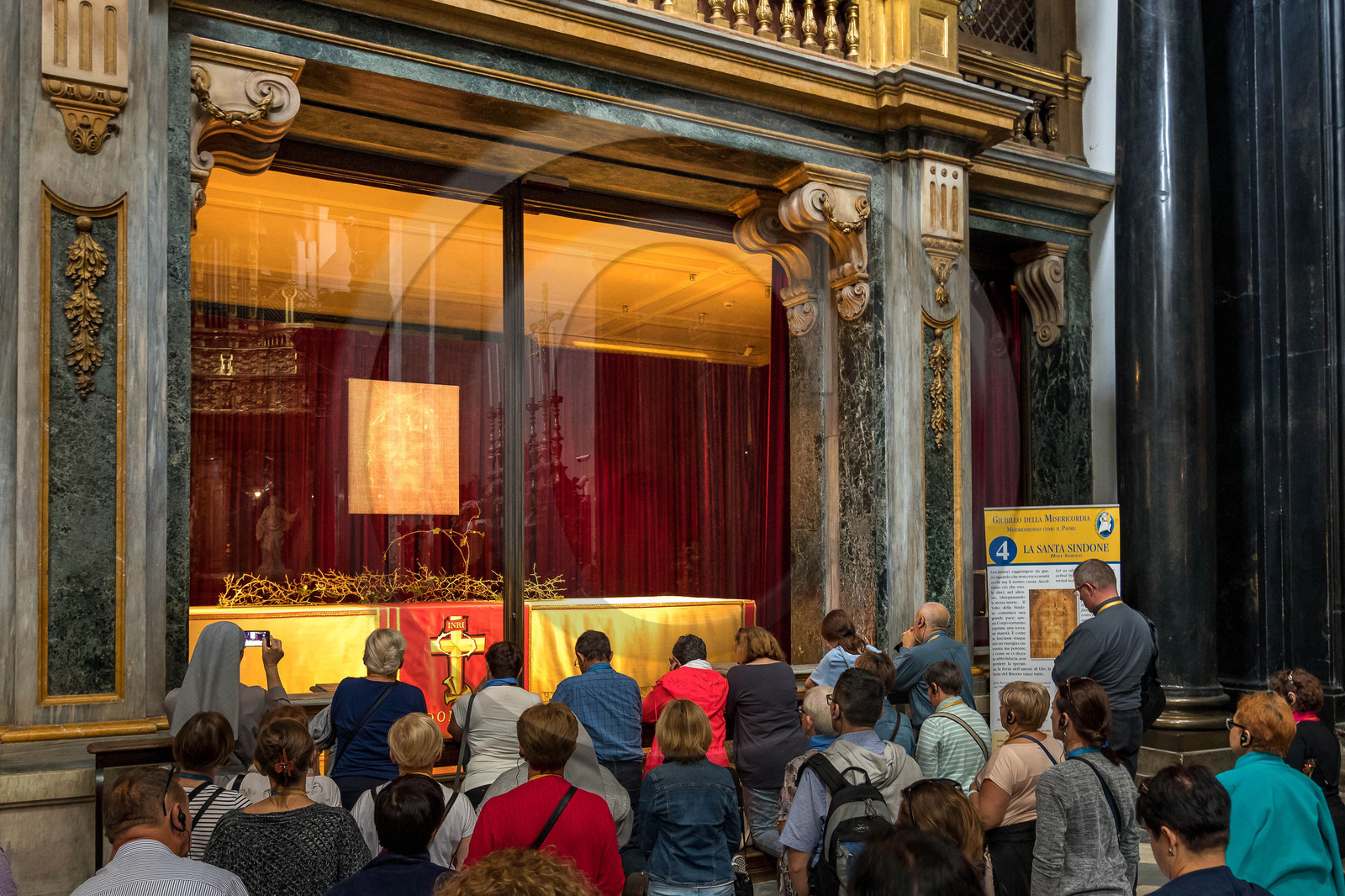| Description | Italie, Piémont, Turin, chapelle de Guarini de la cathédrale Saint-Jean-Baptiste, le suaire ou Saint-Suaire, linceul dans lequel, selon la tradition, le corps du Christ aurait été enveloppé après sa déposition de la croix |