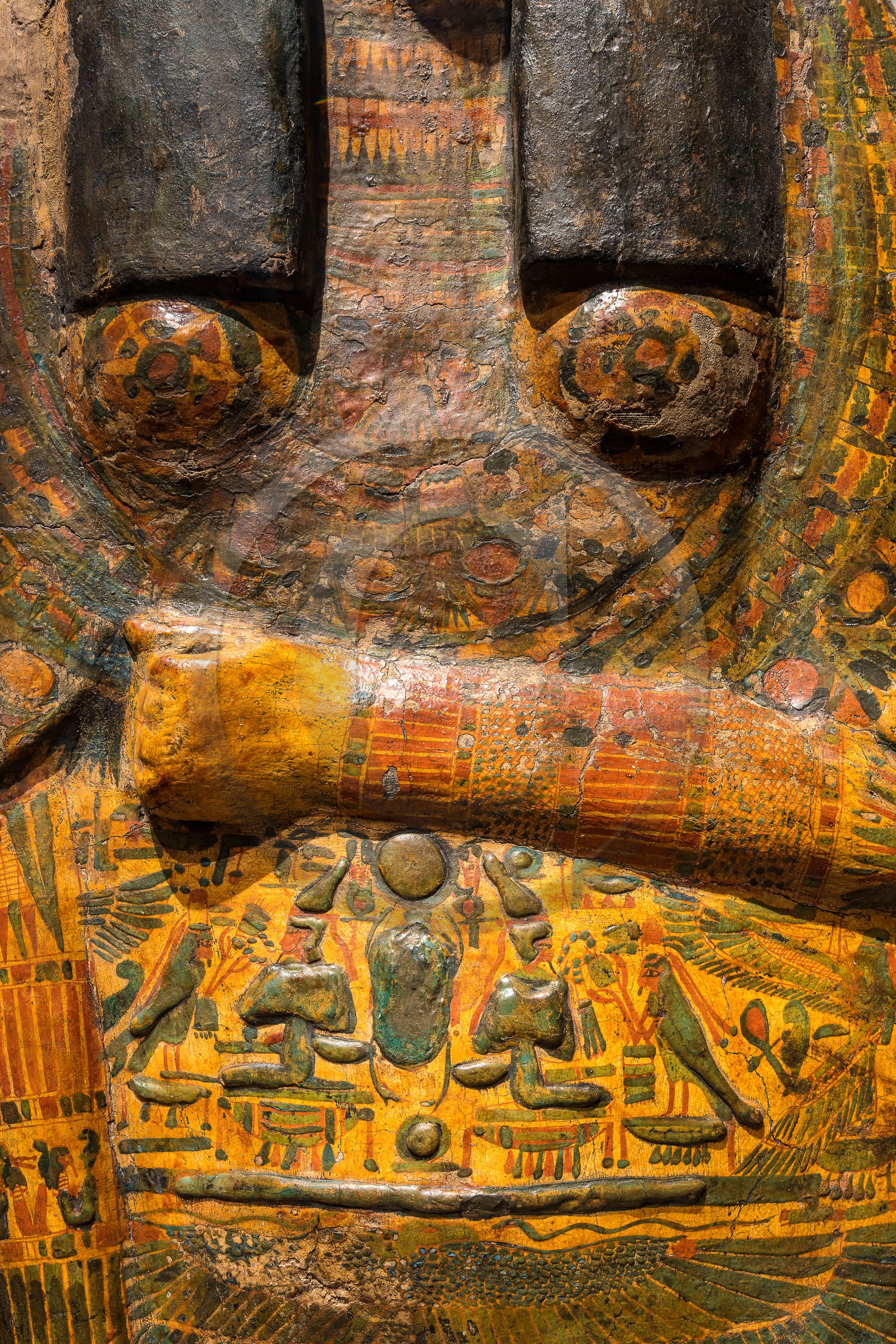 | Description | Italie, Piémont, Turin, Musée égyptologique de Turin, musée des antiquités égyptiennes (Fondazione museo delle antichità egizie di Torino), détail de sarcophage |
