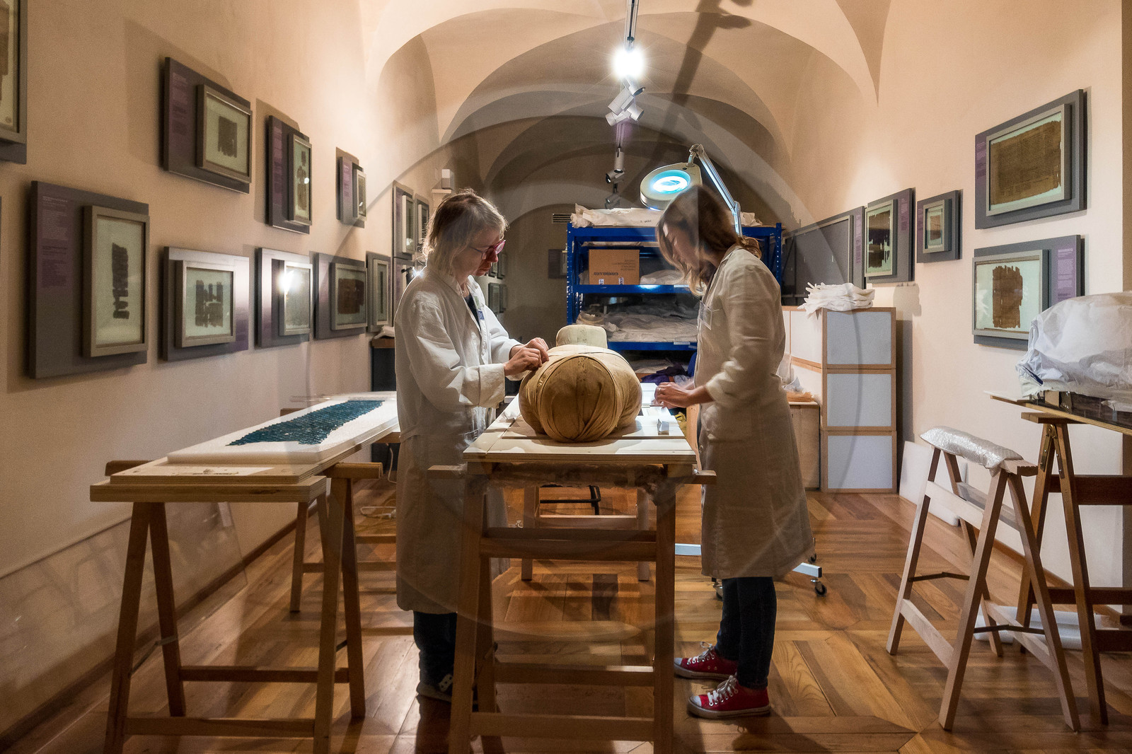 | Description | Italie, Piémont, Turin, Musée égyptologique de Turin, musée des antiquités égyptiennes (Fondazione museo delle antichità egizie di Torino), Restauration et conservation d'une momie |