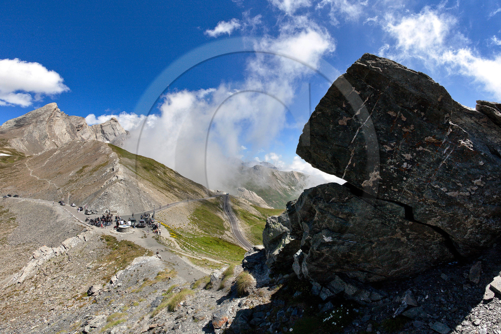 | Description | Hautes-Alpes (05), Parc naturel régional du Queyras, Col Agnel, 2 744 mètres d'altitude, col frontière entre l'Italie et la France, col emprunté par le Tour de France cycliste |