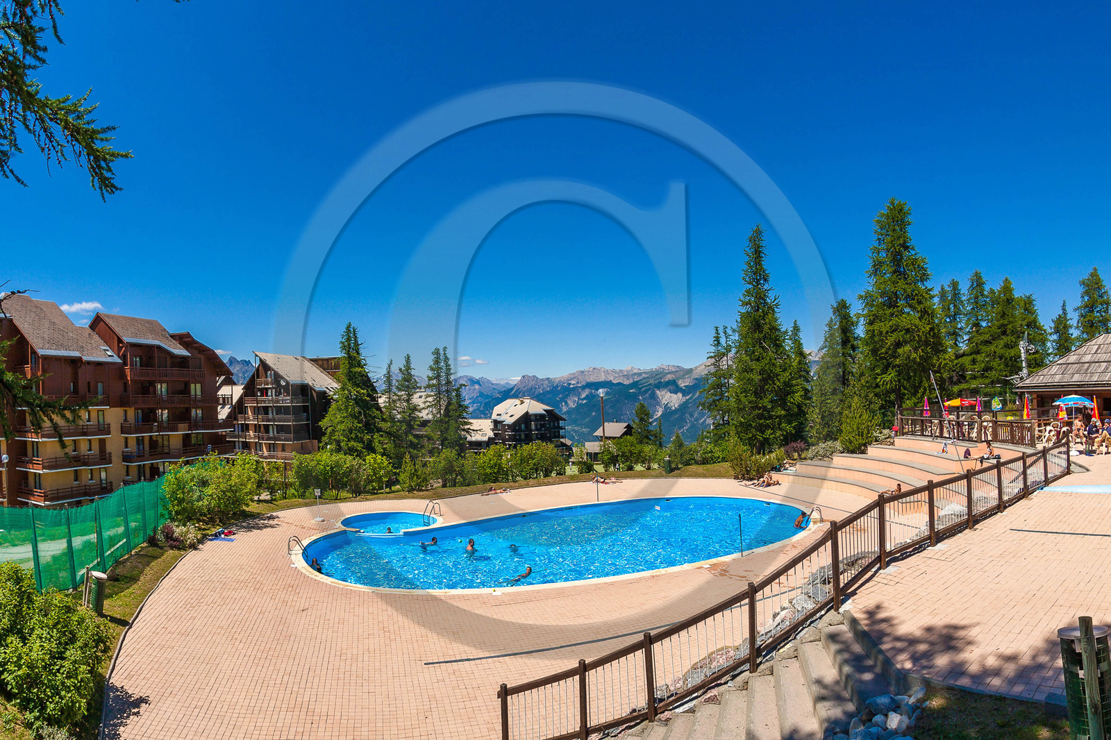 | Description | Hautes-Alpes (05), Guillestrois, Domaine de la Forêt Blanche, Station de ski de Risoul, piscine extérieure |