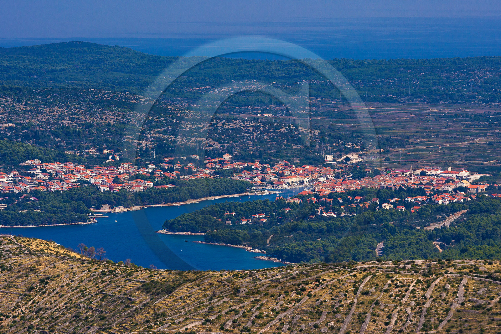 | Description | Croatie, Mer Adriatique, Ile de Hvar , l'ile aux pierres, cultures en terrasse de la lavande, Stari Grad, |
