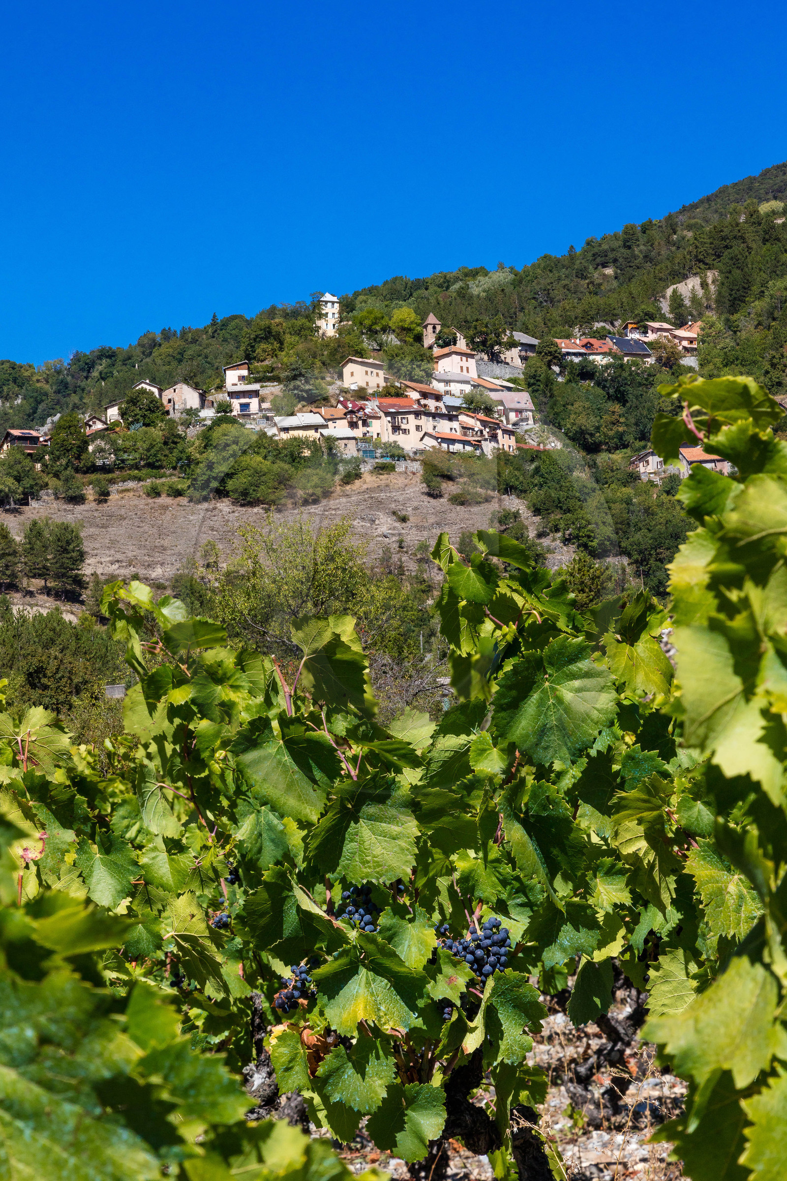 | Description | Hautes-Alpes (05), vallée de la Durance, Serre-Ponçon Val d'Avance, Théüs, Vignoble de Théüs |