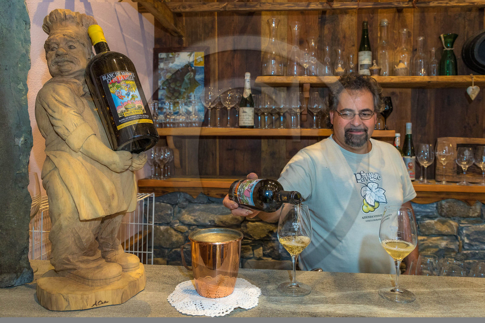 | Description | Italie, vallée d'Aoste, Morgex, Domaine viticole Ermes Pavese, La cave Ermes Pavese produit le Blanc de Morgex et La Salle |