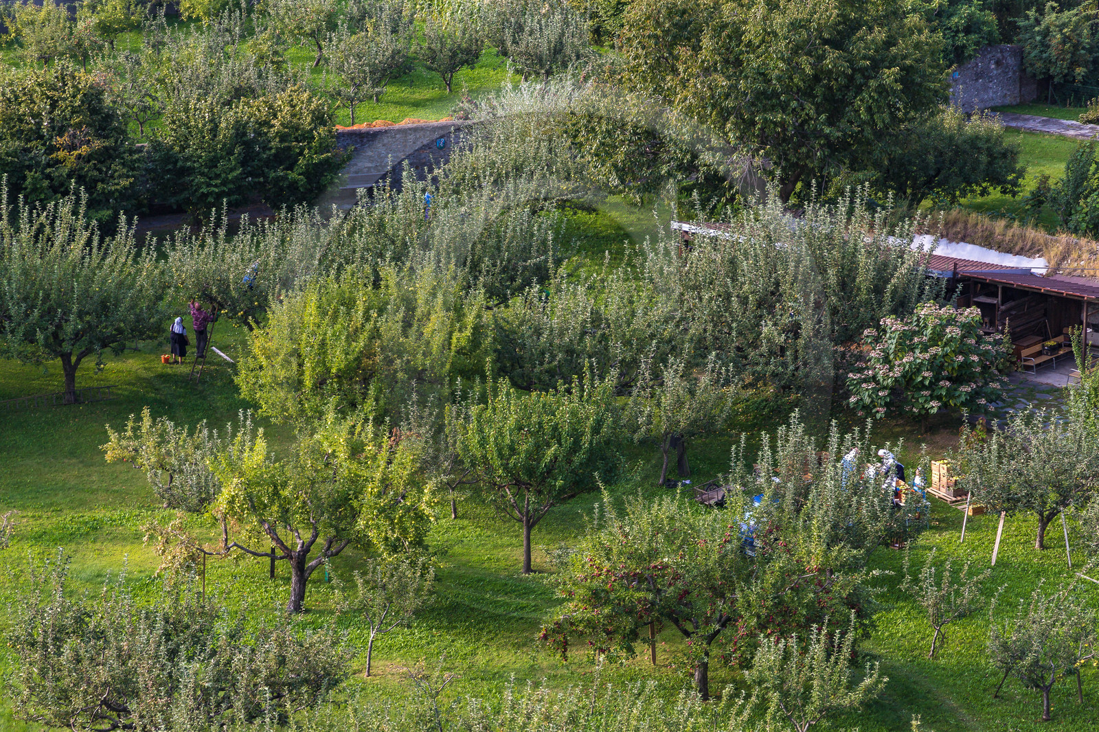 | Description | Italie, vallée d'Aoste, Aoste, monastère des sœurs Sainte-Catherine, cueillette des pommes dans le verger |