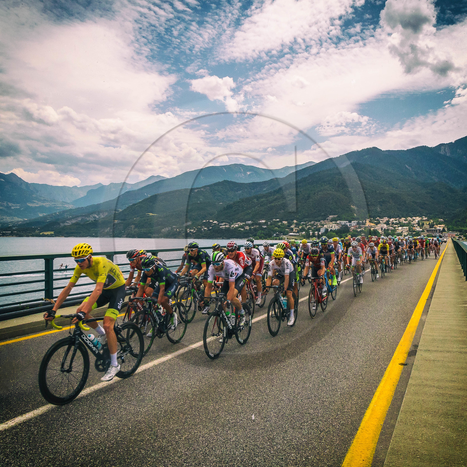 | Description | Hautes-Alpes, Serre-Ponçon Lake, Savines-le-Lac and Savines bridge, Tour de France 21 July 2017, Stage 19: Embrun / Salon-de-Provence, the yellow line and Christopher Froome / |