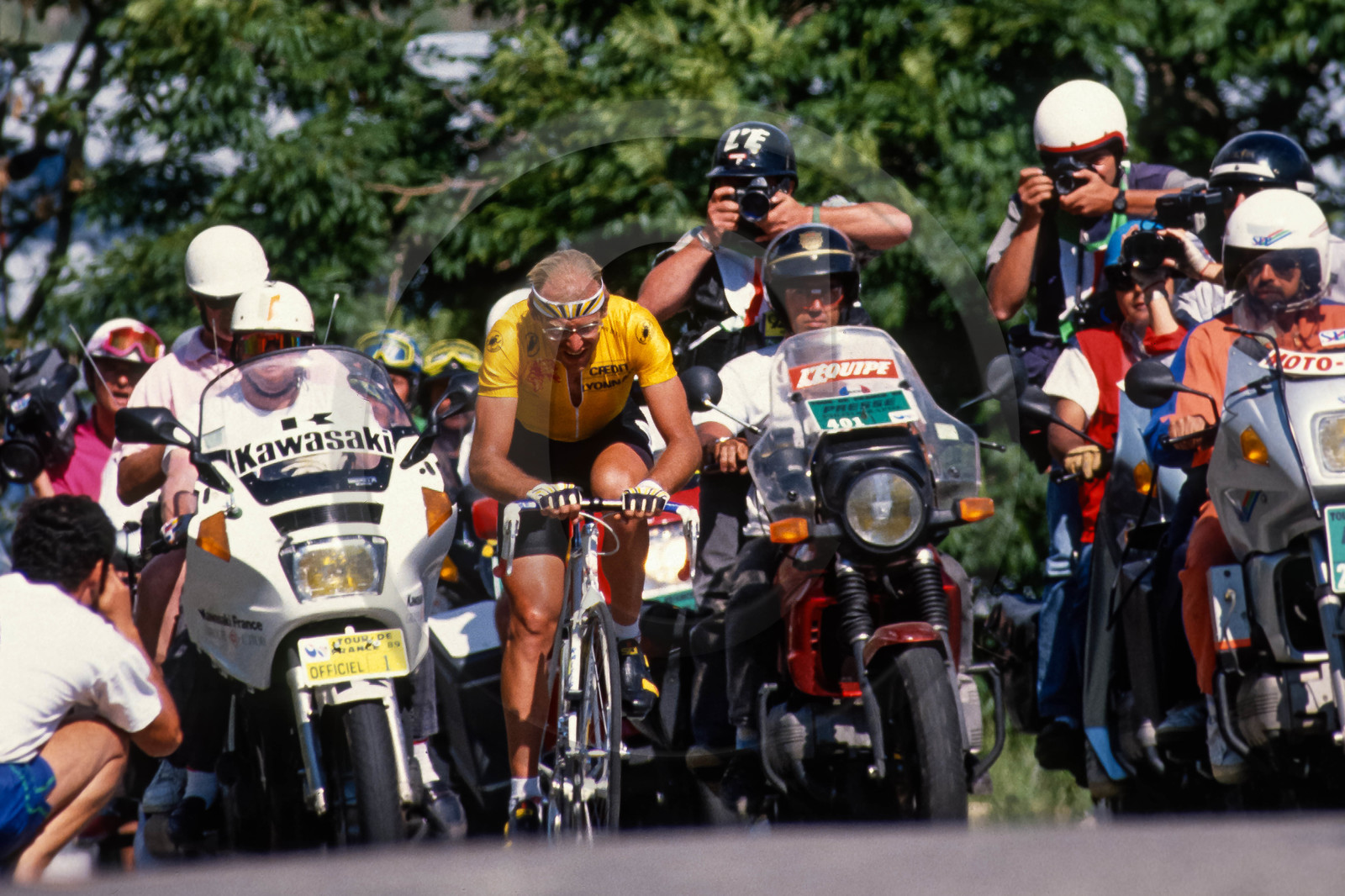 | Description | Hautes-Alpes (05), Vallées Champsaur & Valgaudemar, Tour de France 1989, contre-la-montre Orcières Merlette, le maillot jaune Laurent Fignon |