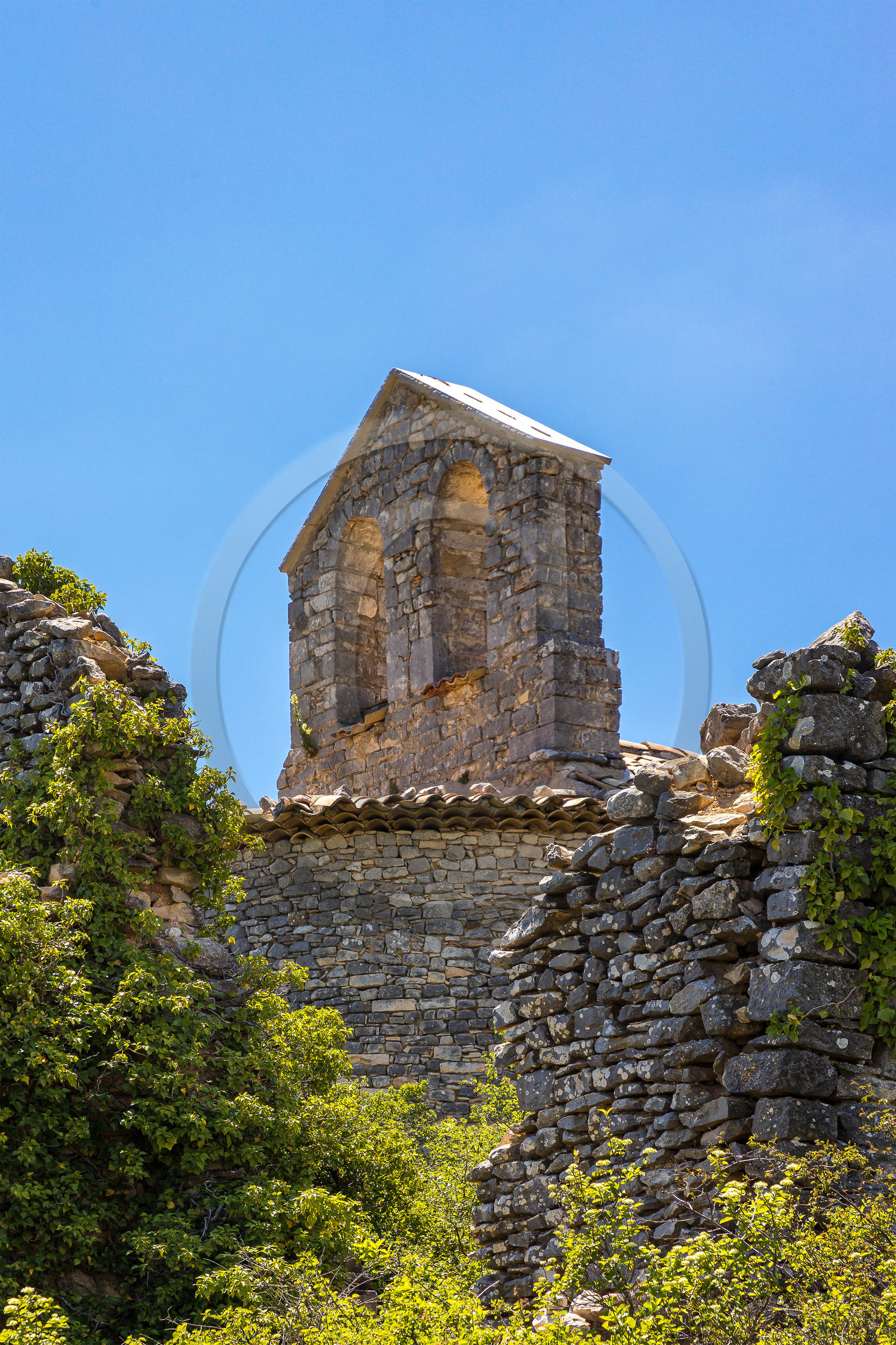 | Description | Alpes de Haute-Provence (04), Pays de Banon, Montsalier, Village abandonné du Haut Montsalier, église Saint-Pierre |
