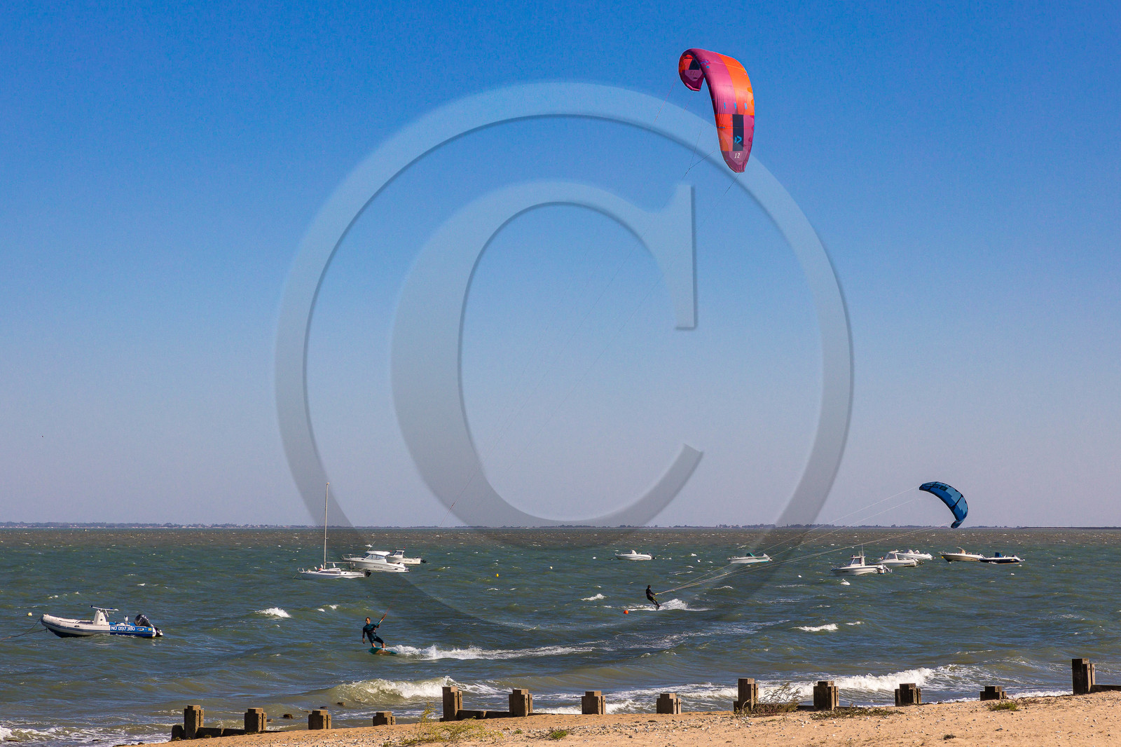| Description | Vendée (85), Île de Noirmoutier, plage des Sableaux, kitesurf |
