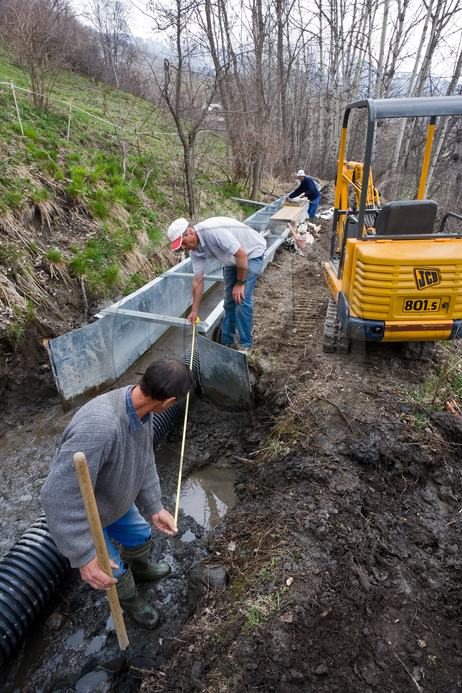 | Description | Hautes-Alpes (05), Chantemerle Serre-Chevalier, réseau des canaux d'irrigation du Briançonnais, canal d'irrigation, Canal Gaillard, corvée d’entretien |
