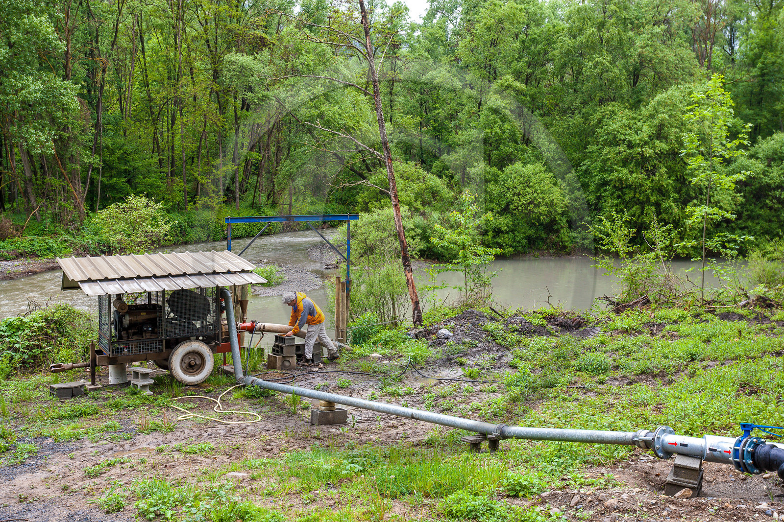 | Description | Alpes-de-Haute-Provence (04), vallée de la Durance, Venterol, Michel Philip, arboriculteur, pompage dans la Durance pour l'arrosage des vergers |