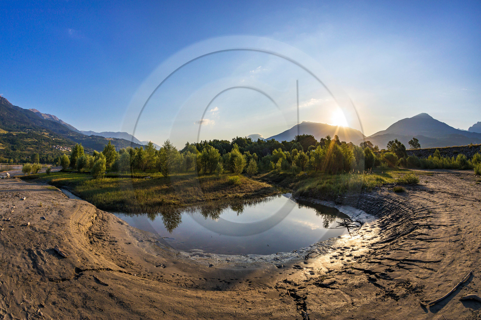 | Description | Hautes-Alpes (05), Baratier, Crots, valley of the Durance, Serre Ponçon lake, Liou wetland, riparian forest, eco-tourist path, footpath on stilts in the heart of an alpine mangrove to observe aquatic life and wildlife |