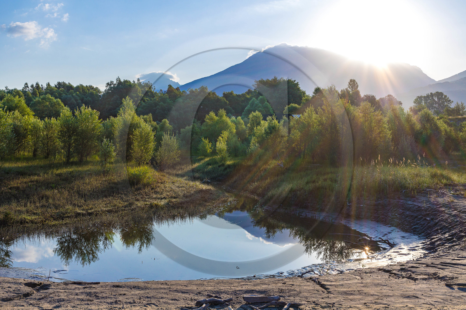 | Description | Hautes-Alpes (05), Baratier, vallée de la Durance, Lac de Serre Ponçon, zone humide du Liou, ripisylve, sentier éco-touristique, parcours piétonnier sur pilotis au cœur d'une mangrove alpine pour observer la vie aquatique et la faune sauvage |