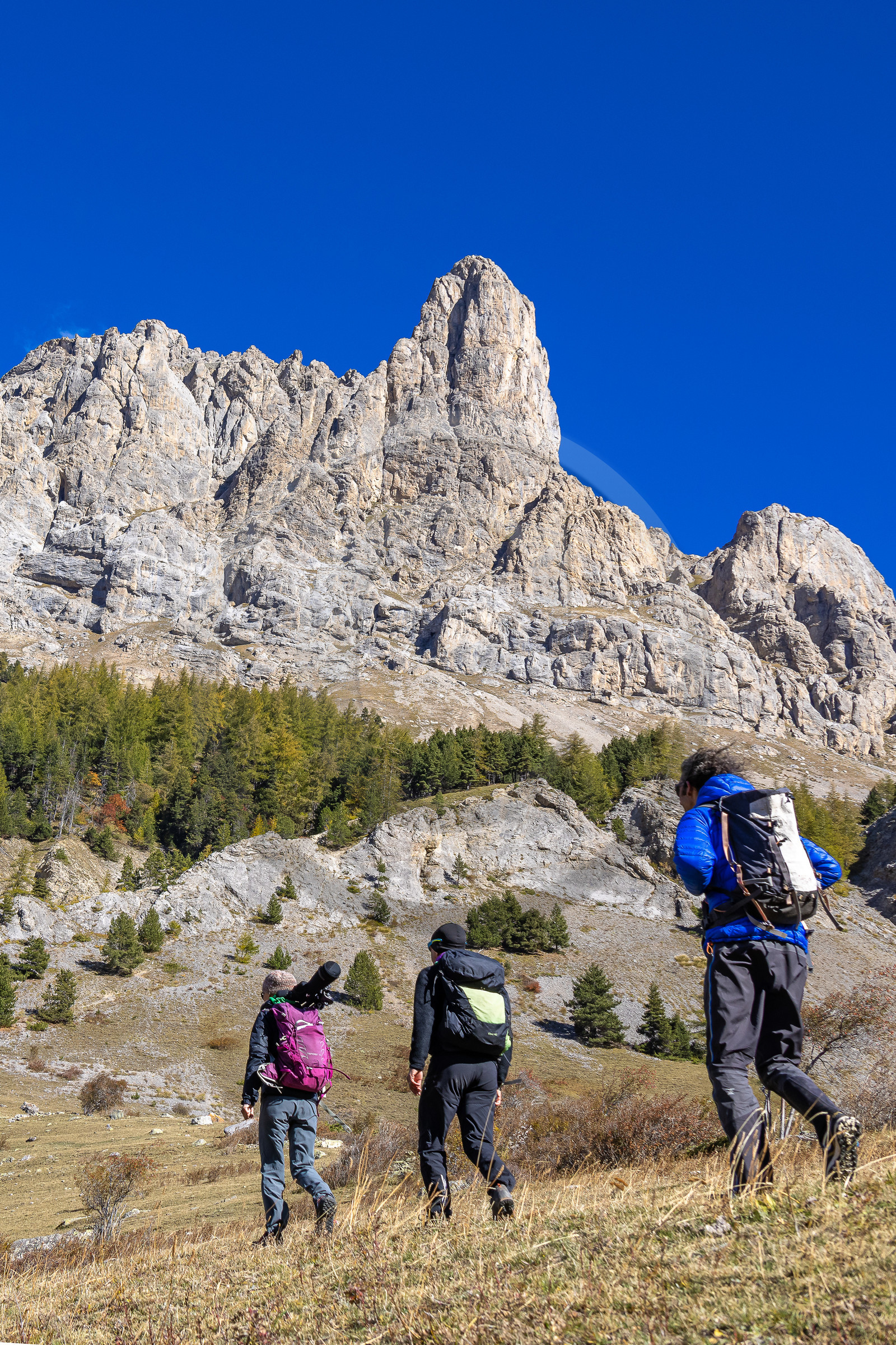| Description | Hautes-Alpes (05), Parc national des Ecrins, Vallée de la Guisanne, Serre-Chevalier, Bureau Montagne Visa Trekking, randonnée pédestre avec Marjolaine Flammier, accompagnatrice en moyenne montagne, sortie découverte bouquetin Esprit Parc national |